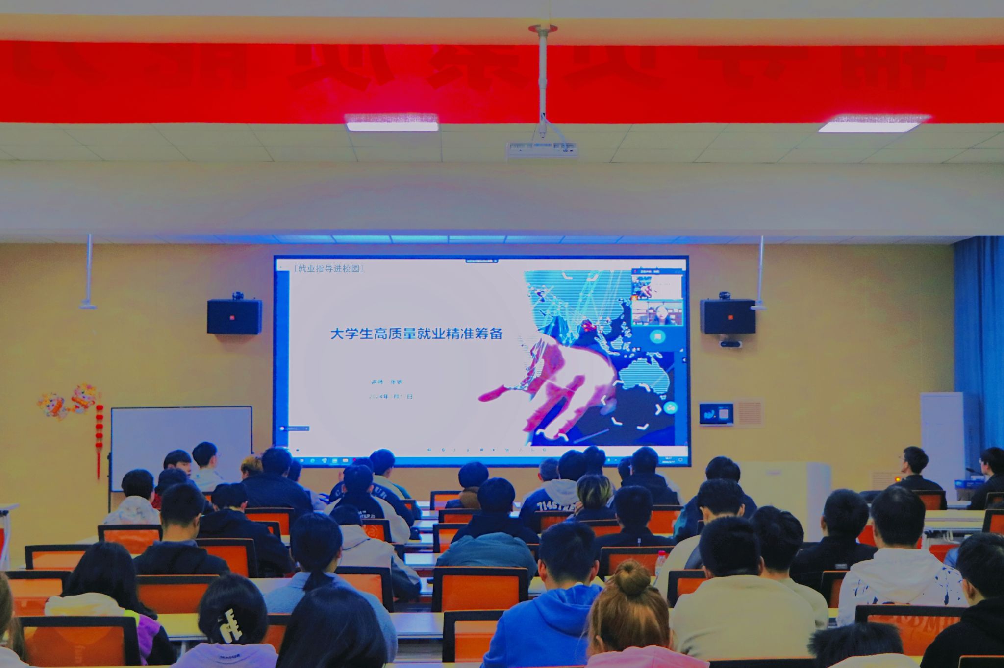 在学院职工之家举办2024年大学生高质量就业精准筹备培训会,本次培训会邀请国家职业指导师、全球职业生涯规划师张妮主讲,全院各年级学生以线上线下方式同步参加。会议由学院分党委副书记周彬主持。