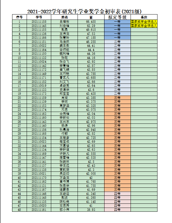 2021-2022学年研究生学业奖学金结果公示(2021级)