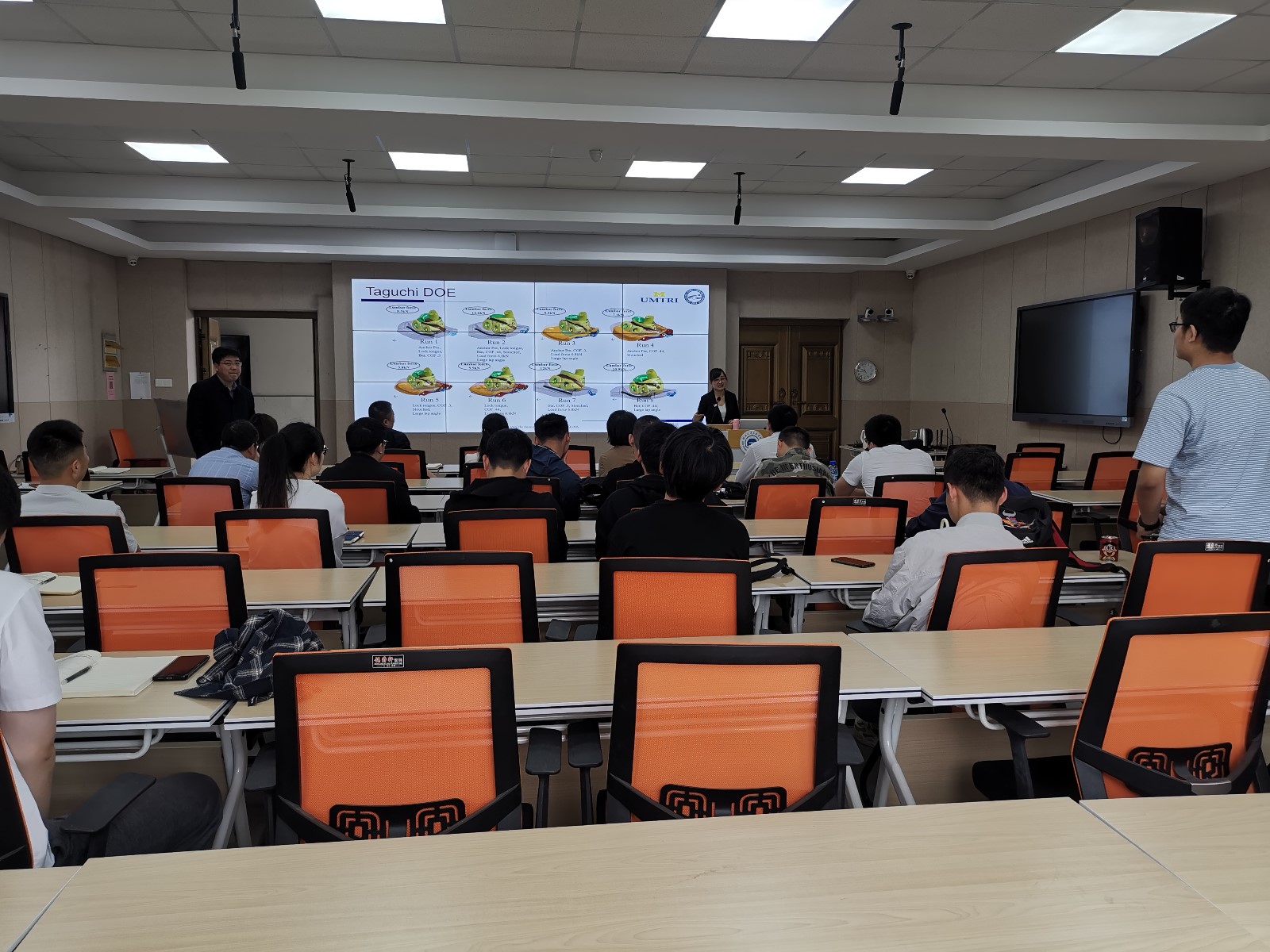 唐亮从汽车安全方面介绍了关于电动桥车电池动态碰撞失效机理的研究,对现有电池技术在碰撞过程中的各项指数进行分析,提出解决在碰撞过程电池失效的策略;介绍了轻量化电动轿车的正面碰撞试验,分析汽车底盘结构对电池组加速度的影响进而保证电动轿车电池的安全性能;还讲解了其在无人驾驶汽车座椅后倾下的碰撞研究,并详细介绍了在碰撞时乘客下潜产生的危害;介绍了针对无人驾驶汽车乘员碰撞损伤机理进行的研究,对于碰撞事故中最常见的腰椎损伤发生机理进行讲解。随后唐教授从题目摘要、立项依据、研究内容、研究目标、科学问题、技术路线、研究基础等几个方面分享了申请国家自然科学基金的宝贵经验。在互动交流环节,唐教授从专业的角度认真严谨地回答了老师和同学们提出的问题,并结合自己的学术经历,分享了自己的学术追求、学术心得和研究经验,并鼓励大家世上无难事、只有肯攀登。