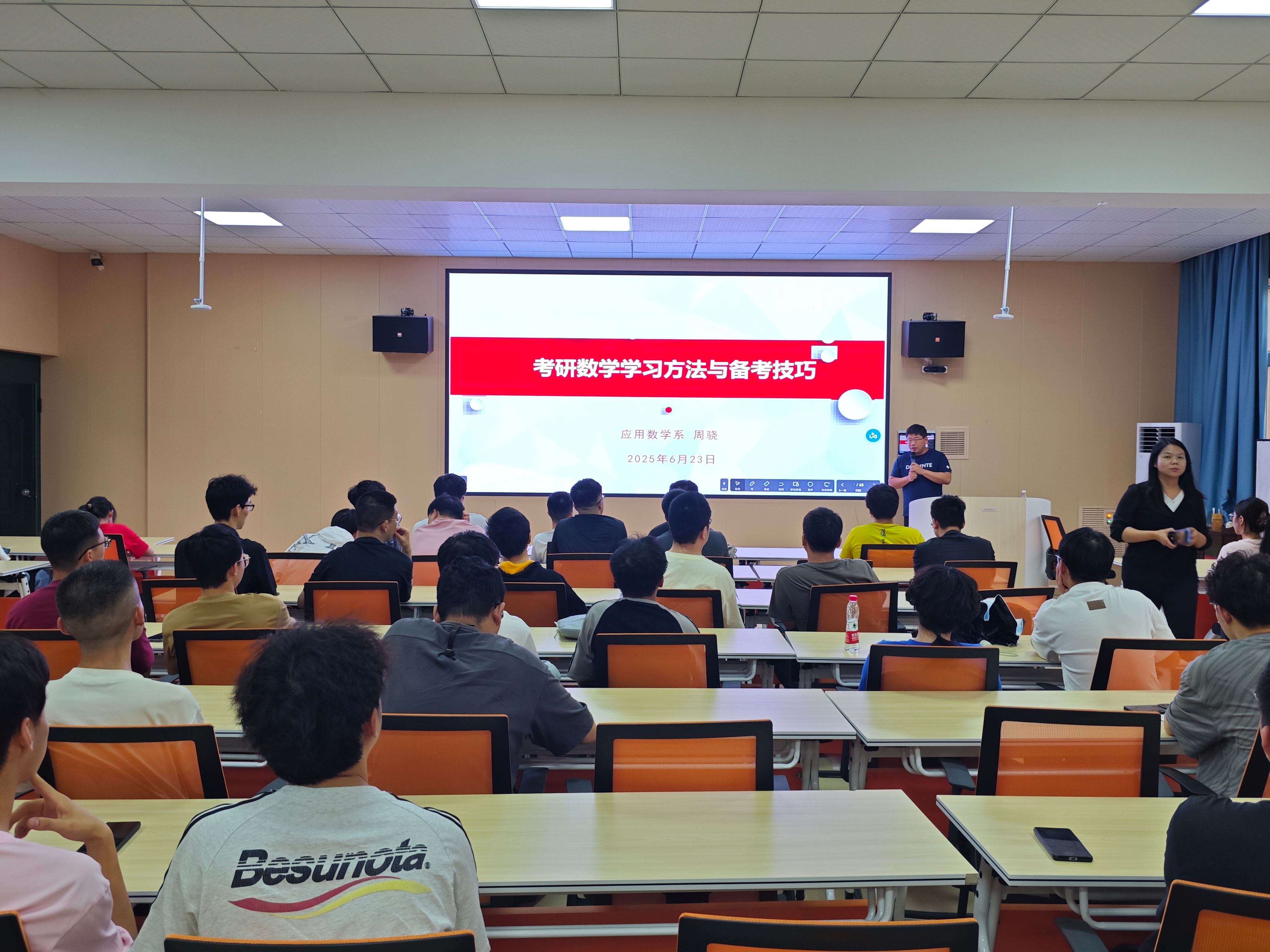 在职工之家举办2026届考研专题指导讲座,特邀校内名师,指导26届毕业生科学报考和备考,为有志深造的学子领航学海。学院党委书记杨亚会、副院长尹长城、副书记周彬出席活动,2022级辅导员甘甜、百余名考研学子参加了此次讲座。数字经济学院周骁教授受邀主讲数学考研方法和技巧。