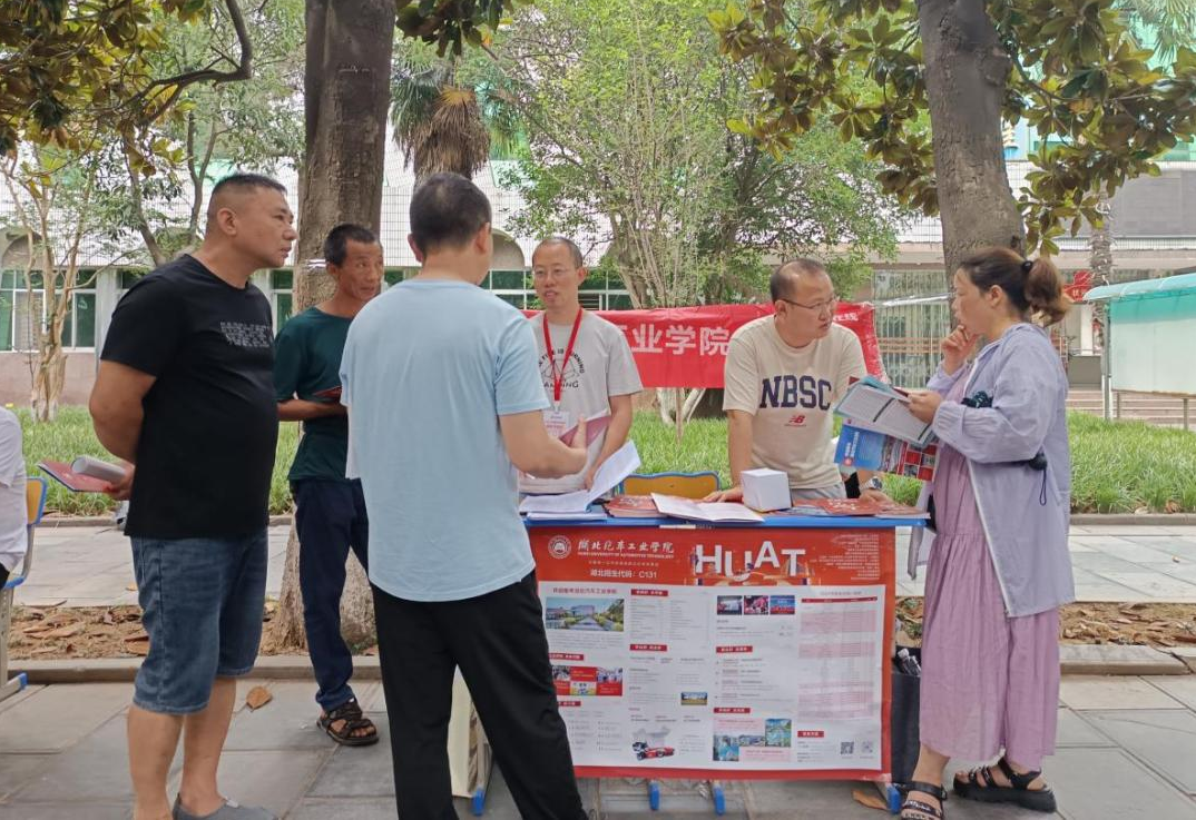 暑气熏蒸,赤日炎炎,参与宣传的师生不畏高温,连轴奔波,赴各地高中详细地向高中老师、考生及家长介绍学校特色专业、师资团队、教学设施等基本情况,以专业特点、专业规划、职业优势等吸引优质生源,讲解2024年学校招生录取政策,为家长、学生答疑解惑,进一步扩大学校在广大高中学子及家长中的影响。6月27日-28日,院长胡明茂、分党委书记杨亚会、分党委副书记周彬带队到十堰市柳林中学开展招生宣传,在咨询现场向考生及家长详细介绍了学校今年的招生计划和招录政策等信息,并重点推荐了车辆工程、智能车辆工程、车辆工程中英班等专业。