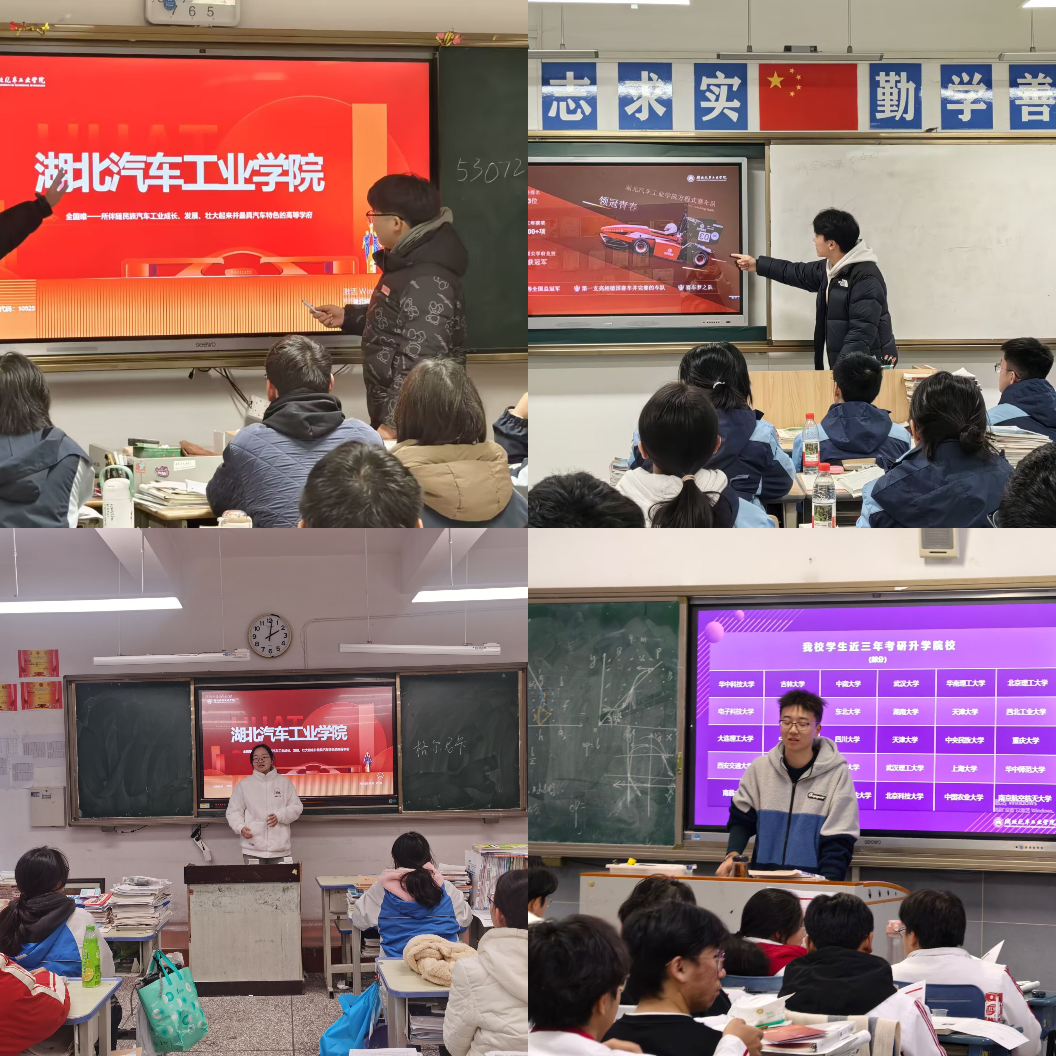 车辆233班陈周翔回到母校宜都一中,开展完宣讲后感慨:“讲述到汽院发展历程时,我倍感自豪。希望能有更多学弟学妹加入我们,共同在这里学习成长。”