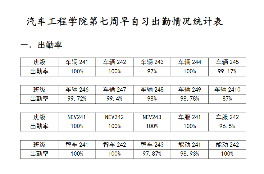 【督学正风】做爱片 2024-2025学年第一学期第七周早自习出勤情况